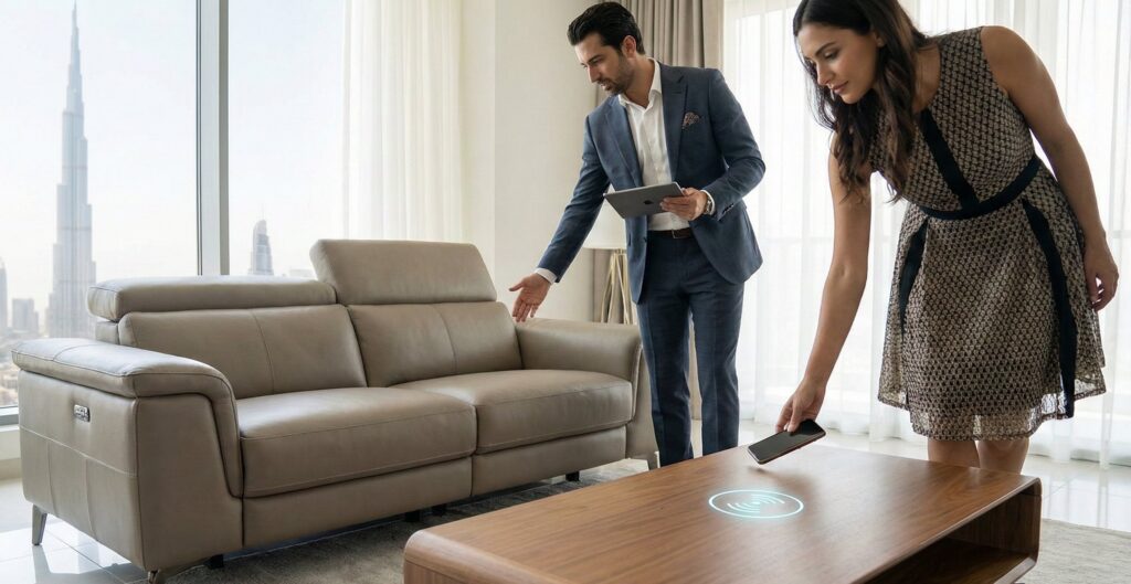 Dubai’s smart furniture market segments into three primary price tiers based on technology integration complexity. Entry-level systems incorporating basic wireless charging and LED lighting occupy the AED 8,000-15,000 range for complete seating groups. Mid-tier implementations with motorized adjustment and environmental sensing capabilities range from AED 22,000-45,000, while premium installations featuring comprehensive automation, health monitoring, and custom integration exceed AED 75,000 for coordinated room solutions. Solomia Home positions its technology-integrated collections in the premium segment, emphasizing engineering precision and long-term reliability over feature proliferation.